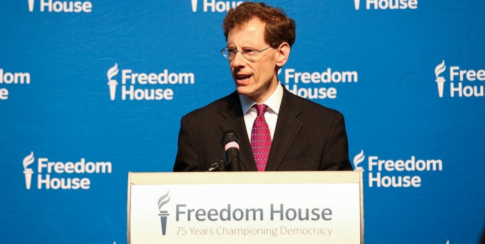 Freedom House se convirtió en una de las piezas claves de los golpes “suaves” en Europa Oriental y el Cáucaso, participando activamente en el financiamiento y la promoción internacional de las organizaciones involucradas junto a la NED, la USAID, el Open Society Institute y el Project for Transitional Democracy. Cada año publica un informe titulado “El Estado del Mundo”, que divide todos los países en tres categorías: países libres, parcialmente libres o dictaduras, una división totalmente acorde a los intereses de Washington.