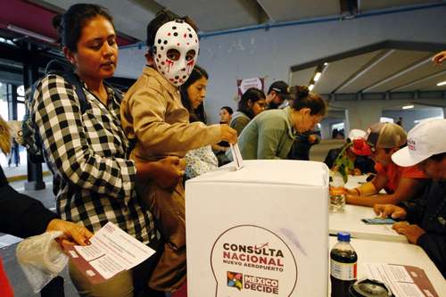 El analista Luis Hernández Navarro señala que López Obrador convirtió la con­sulta sobre la continuidad de la construcción del NAIM en un pulso para ver quién manda en el país: si la alianza de grandes empresarios y políticos que perdieron las elecciones en julio, o él y la coalición por la cuarta transformación. Sin embargo, el sondeo no salda de manera definitiva este combate y el pleito por ver quién está al frente del timón continúa, añade.