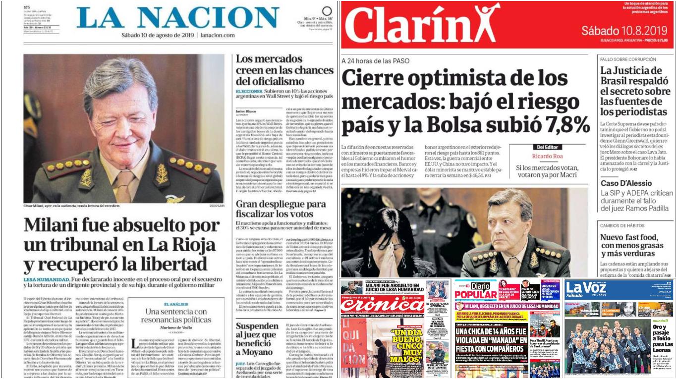 Las tapas de los diarios hegemónicos que marcan la agenda informativa nacional festejaron el “cierre optimista de los mercados”, en las vísperas de la elección y en plena veda. El editor de Clarín y segundo al mano del diario del grupo Magnetto se atrevió a más y estampó su firma bajo el título “Si los mercados votan, votaron ya por Macri”.