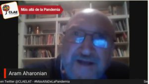 “Ha llegado la hora de combatir ambos virus: El covid-19 y el neoliberalismo”, afirmó Aharonian para quien también es la hora de “nuevas ideas y soluciones que no pueden atarse a viejos dogmas. “Dijera Simón Rodríguez, el maestro de Simón Bolívar, o inventamos o erramos”.