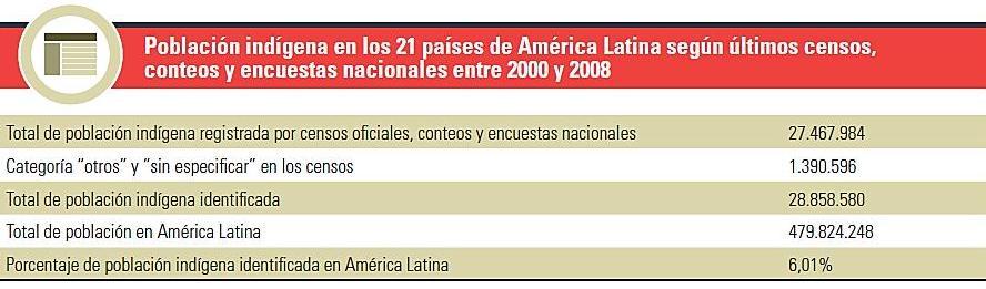 Y todavía quedarían 470 pueblos sin nombrar de ese inmenso conjunto que constituye el 8% de la población latinoamericana (30 millones de indígenas identificados) pero que sube a más del 14% de los pobres y el 17% de los extremadamente pobres de la región, constituyendo el grupo más numeroso entre analfabetos y desempleados.