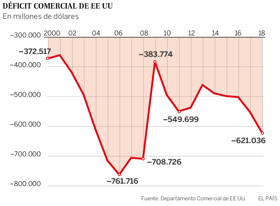 La segunda de las disputas se asienta en el déficit crónico de Estados Unidos, tanto en el de su balanza comercial como en la fiscal, ambos vinculados además a la potencial diversificación de formas de intercambio comercial por fuera del dólar. La utilización de la moneda estadounidense ha sido el soporte con que Washington ha logrado sortear, desde la década del ’70 hasta la actualidad, el deficitario status de sus estructuras económicas.