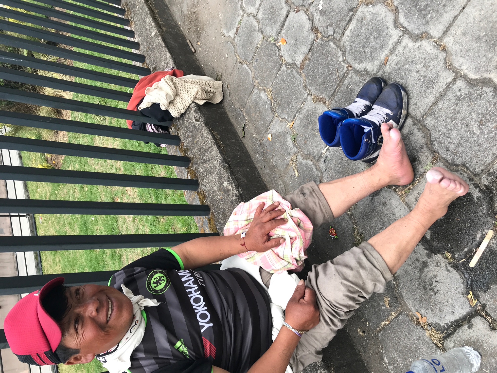 No muy lejos del palacio presidencial de Carondelet, las familias y comunidades indígenas que han comenzado a llegar a Quito desde el lunes toman un respiro en el parque El Arbolito en la tarde del miércoles 9. Con los pies cansados y llenos de ampollas, Juan se quita los zapatos en busca de alivio. Pero no se queja, todo lo contrario, sonríe y bromea: “Se le va a romper la cámara si me saca una foto”.