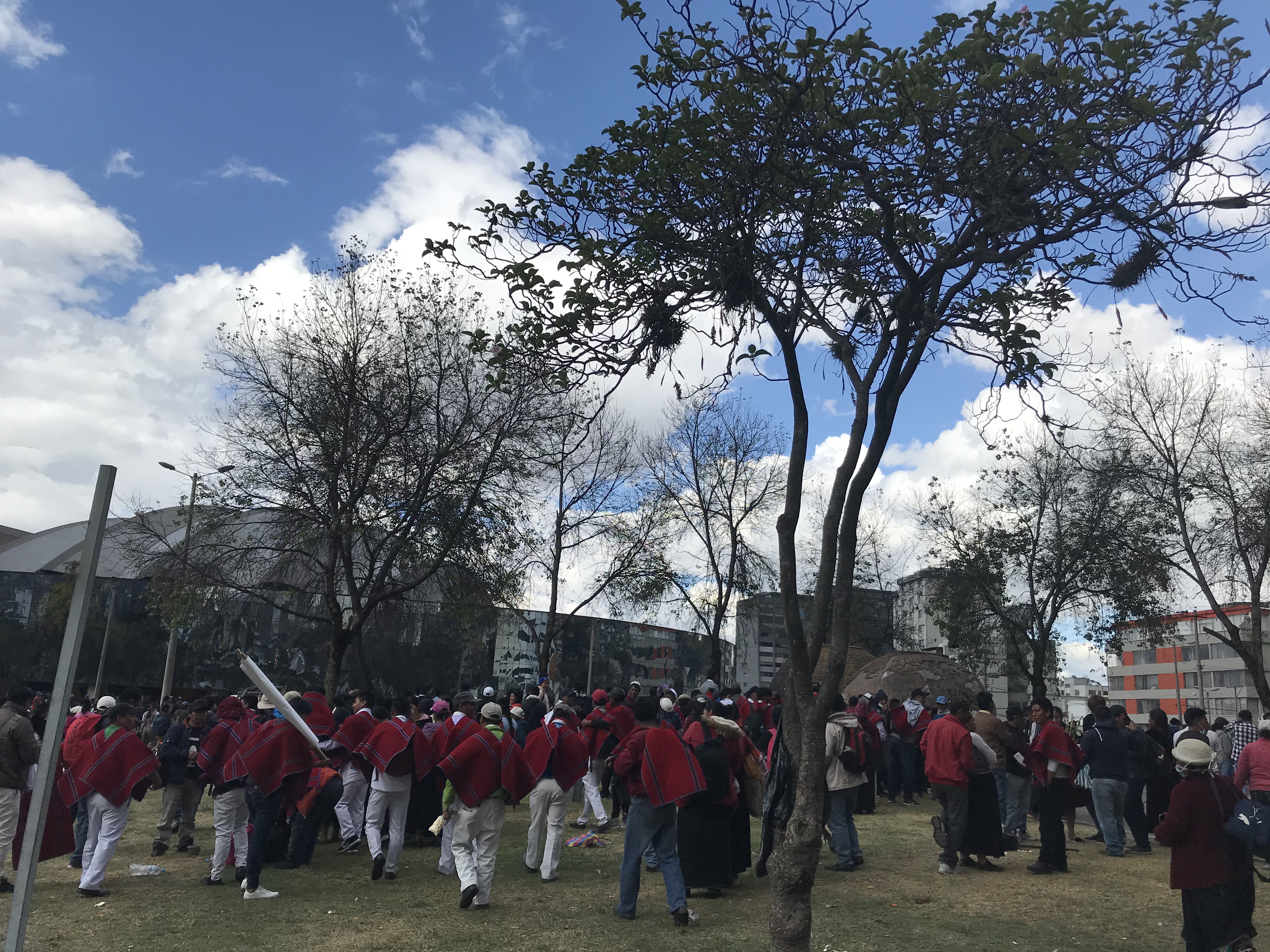 Los ponchos cortos y rojos de los hombres de Tungurahua contrastan contra el cielo gris de la tarde quiteña. Y encienden una llama de esperanza para los pueblos indígenas.