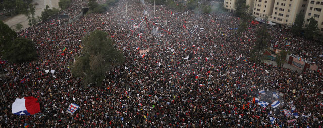 “No son 30 pesos, son 30 años”. Esta consigna, levantada entre cientos de pancartas durante unas movilizaciones que tienen perplejo al país, expresa un clima, una percepción temporal. Con las consignas Chile despertó y Piñera, renuncia ya, alrededor de un millón 200 mil personas se manifestaron el viernes 25 por la Alameda, la avenida principal de Santiago, abarrotada por varios kilómetros y rebasada hacia todas las calles aledañas, y varias ciudades de todo el país.