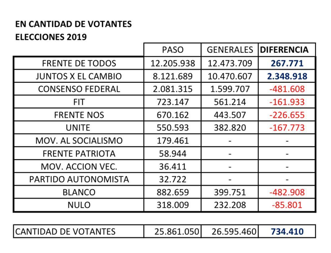 En menos de tres meses la alianza Cambiemos logró crecer un 22,83%, mucho menos que la remontada de8,61% que consiguió esta vez; y los 678.774 sufragios de ventaja obtenidos son aún mucho menos que los actuales 1.996,123 de Fernández sobre el mandatario saliente.