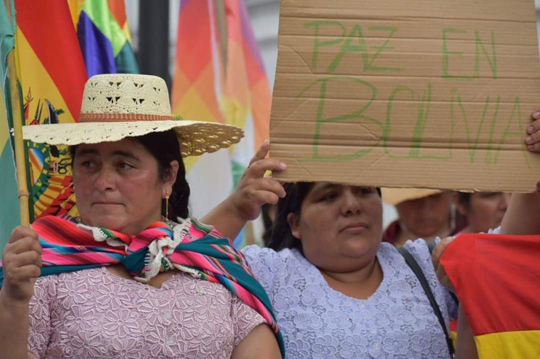Una señora bajita, de unos 60 años, con un aguayo cruzado en el pecho y un sombrero se afirma en la baranda que protege la vereda para ver pasar la manifestación. “Soy de Yungas y hace más de 20 años que vivo en Argentina. Quiero acompañar a mi pueblo y estoy muy orgullosa por cómo nos está acompañando el pueblo argentino. Me emocioné y lloré. Queremos que vuelva nuestro presidente, porque desde que estuvo él no pasaron estas cosas. Gracias por acompañarnos en este momento cuando más necesitamos. Gracias Argentina”.