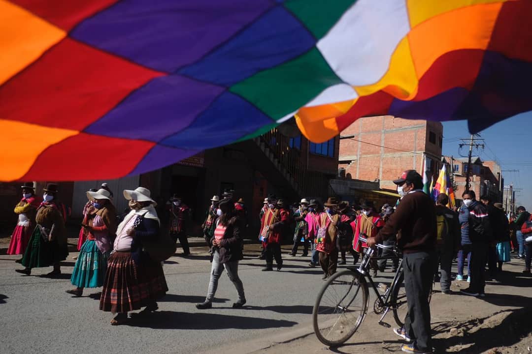 La movilización fue convocada a primera hora de la mañana en el simbólico lugar de Senkata, La Paz, donde el 19 de noviembre del 2019 ocurrió una masacre, desde donde millares de manifestantes marcharon rumbo a la región de la Ceja, donde se llevó a cabo un cabildo multitudinario.
