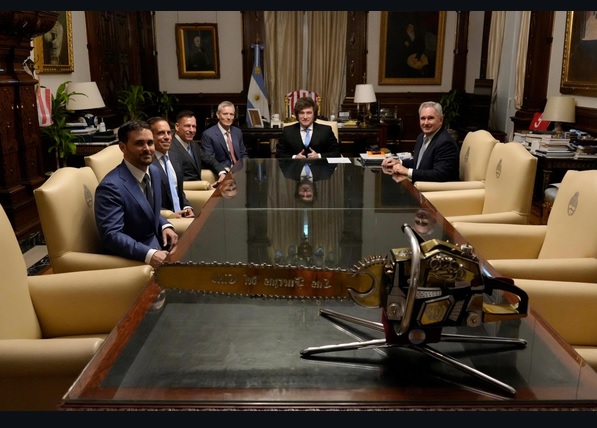 La primera visita de Thiel a la Argentina había ocurrido en mayo de 2024. El nexo fue Alec Oxenford —hoy embajador argentino en Washington— y el encuentro con Milei dejó en el empresario una impresión que él mismo describió como entusiasmo genuino. En octubre de ese año, en un foro del Club Económico de Miami, Thiel formuló una pregunta retórica que era, en realidad, una declaración de intenciones: «¿Por qué nos interesa tanto lo que pasa en Argentina? La respuesta es que sentimos que Argentina podría ser el futuro de Europa y de Estados Unidos». Hay que detenerse en esa frase. No dice que Argentina es un buen mercado, ni que tiene potencial de crecimiento. Dice que Argentina podría ser el futuro. El laboratorio. El ensayo general.
